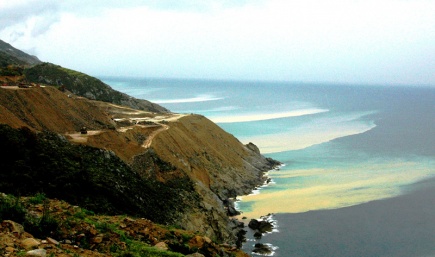Φωτογραφία 1: Χαρακτηριστική φωτογραφία της περιοχής έπειτα από μικρή βροχόπτωση και την κατάληξη τεράστιων όγκων αδρανών υλικών στη θάλασσα.